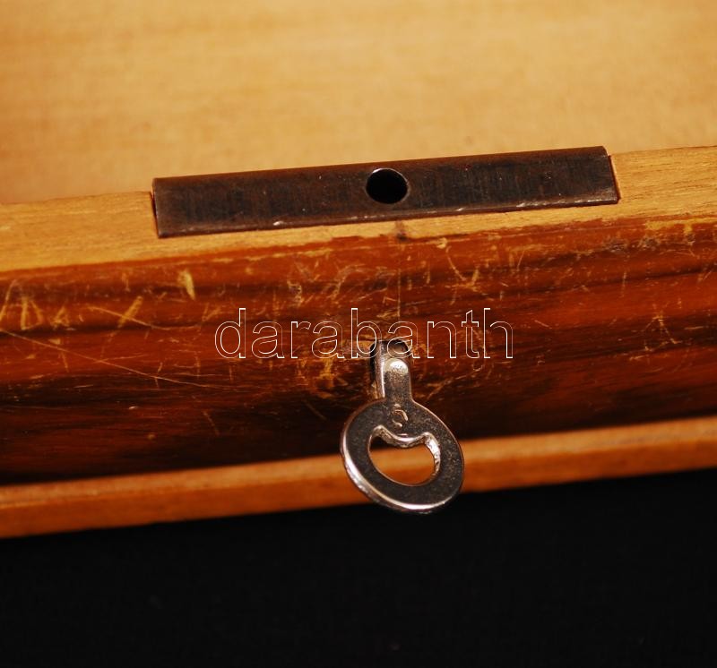 Régi asztali fa doboz, kulccsal, karcos, 21×17 cm https://www.darabanth.com/de/215-Fernauktion/215.0/Andere-Sammelgebiete/Flohmarkt~20/Regi-asztali-fa-doboz-kulccsal-karcos-21C39717-cm~II907002