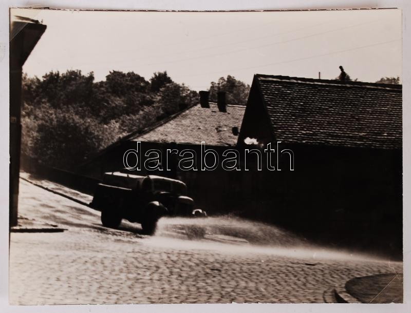 Beschreibung: 1958 Locsolókocsi a Svábhegyen, hátoldalán feliratozva, 12x9 cm