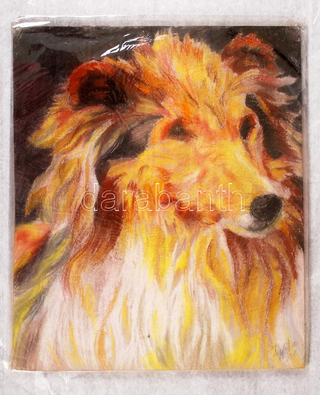 Beschreibung: Olvashatatlan jelzéssel: Skót juhász. Pasztell, karton, 32×28 cm