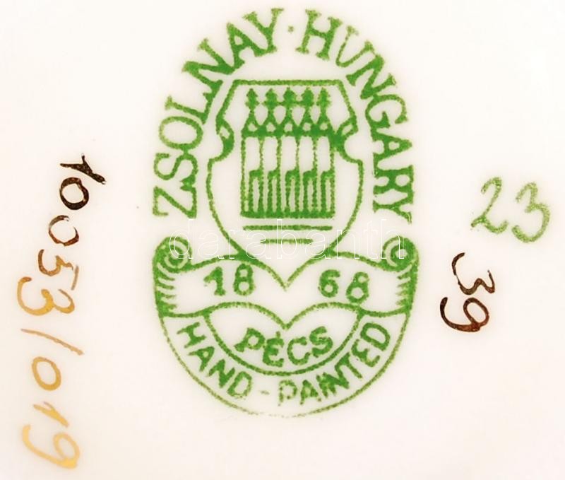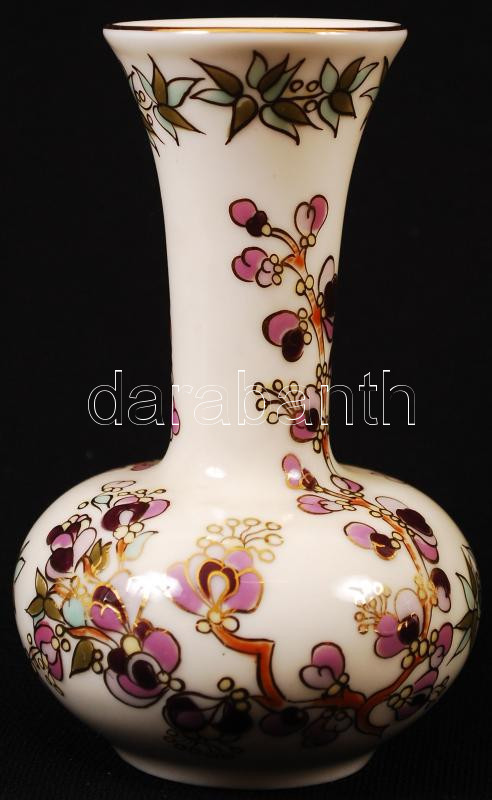 Zsolnay kis váza, kézzel festett, jelzett, hibátlan, m:11 cm https://www.darabanth.com/de/215-Fernauktion/215.0/Andere-Sammelgebiete/Porzellan~9/Zsolnay-kis-vaza-kezzel-festett-jelzett-hibatlan-m11-cm~II905916