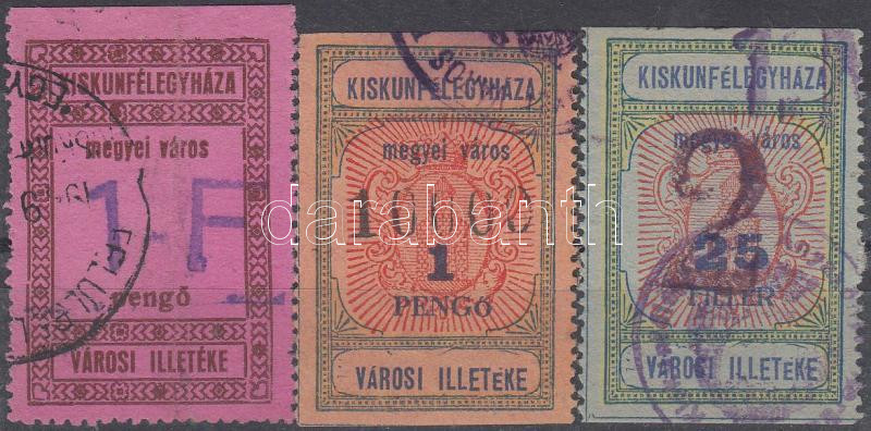 Beschreibung: Kiskunfélegyháza 3 db városi illetékbélyeg