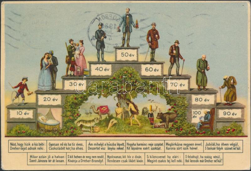 Beschreibung: Életünket végig Dreher márkák védik / Dreher life, humour (EK)