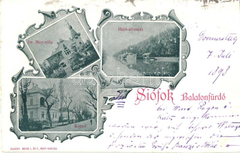 1898 Siófok, Dr. Ney-villa, korzó, hajóállomás (levágott / cut) https://www.darabanth.com/de/215-Fernauktion/215.0/Ansichtskarten/Ungarn~40010/1898-Siofok-Dr-Ney-villa-korzo-hajoallomas-levagott-cut~II906506