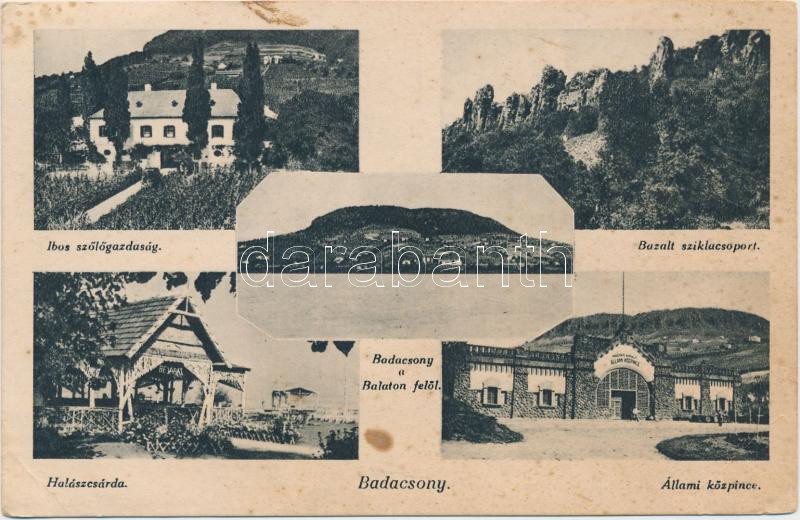 Badacsony, Ibos szőlőgazdaság, Halászcsárda, Állami közpince, Bazalt s... https://www.darabanth.com/de/215-Fernauktion/215.0/Ansichtskarten/Ungarn~40010/Badacsony-Ibos-szologazdasag-Halaszcsarda-Allami-kozpince-Bazalt-sziklacsoport-EB~II900393