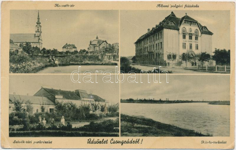 Csongrád, Kossuth tér, Állami polgári fiú iskola, Szivák tér, Körös to... https://www.darabanth.com/de/215-Fernauktion/215.0/Ansichtskarten/Ungarn~40010/Csongrad-Kossuth-ter-Allami-polgari-fiu-iskola-Szivak-ter-Koros-torkolat-azott-wet-~II899765