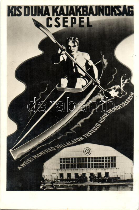 Kis Duna Kajakbajnokság Csepelen reklám 'Weiss Manfréd kajaktelep' / H... https://www.darabanth.com/de/215-Fernauktion/215.0/Ansichtskarten/Werbungen~40081/Kis-Duna-Kajakbajnoksag-Csepelen-reklam-Weiss-Manfred-kajaktelep-Hungarian-kayak-championship~II906303