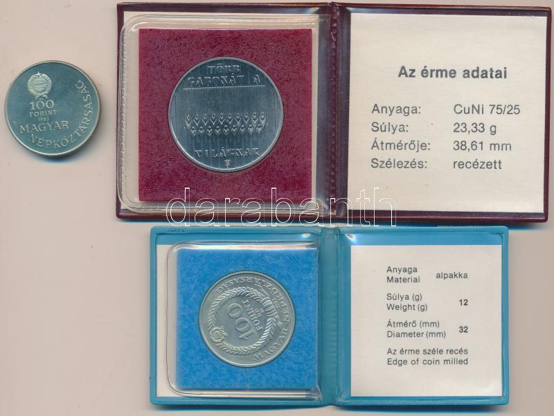1983. 100Ft CuNi "FAO" eredeti tokban, tanúsítvánnyal + 1983. 100Ft Al... https://www.darabanth.com/de/215-Fernauktion/215.0/Numismatik/Ungarische-Munzen~10008/1983-100Ft-CuNi-FAO-eredeti-tokban-tanusitvannyal-plus-1983-100Ft-Alpakka-Szechenyi-Istvan-~II904833