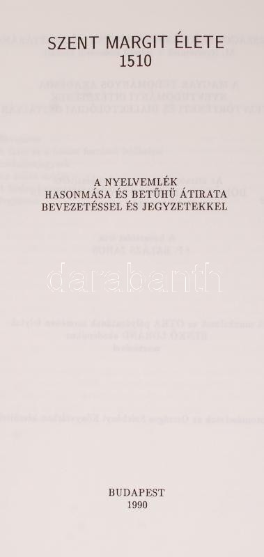 Szent Margit élete 1510. A nyelvemlék hasonmása és betűhű átirata bevezetéssel és jegyzetekkel. Bp., 1990. Aranyozott műbőr kötés, védőborítóval, illusztrált, jó állapotban.