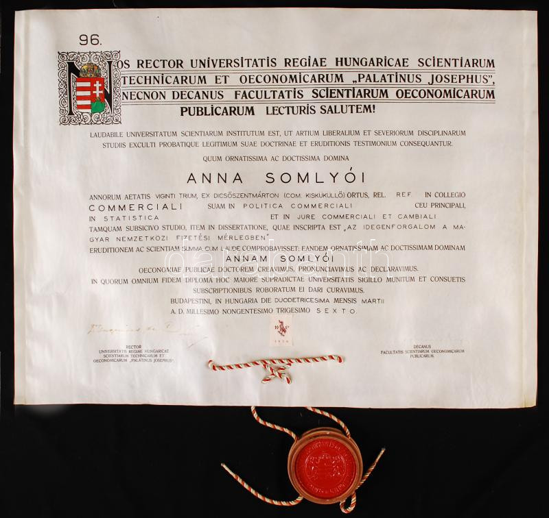 1936 Közgazdasági diploma, hölgy számára, és egy tanári szakvizsga okl... https://www.darabanth.com/de/216-Fernauktion/216.0/Andere-Sammelgebiete/Dokument~400053/1936-Kozgazdasagi-diploma-holgy-szamara-es-egy-tanari-szakvizsga-oklevel-jo-allapotban~II916766