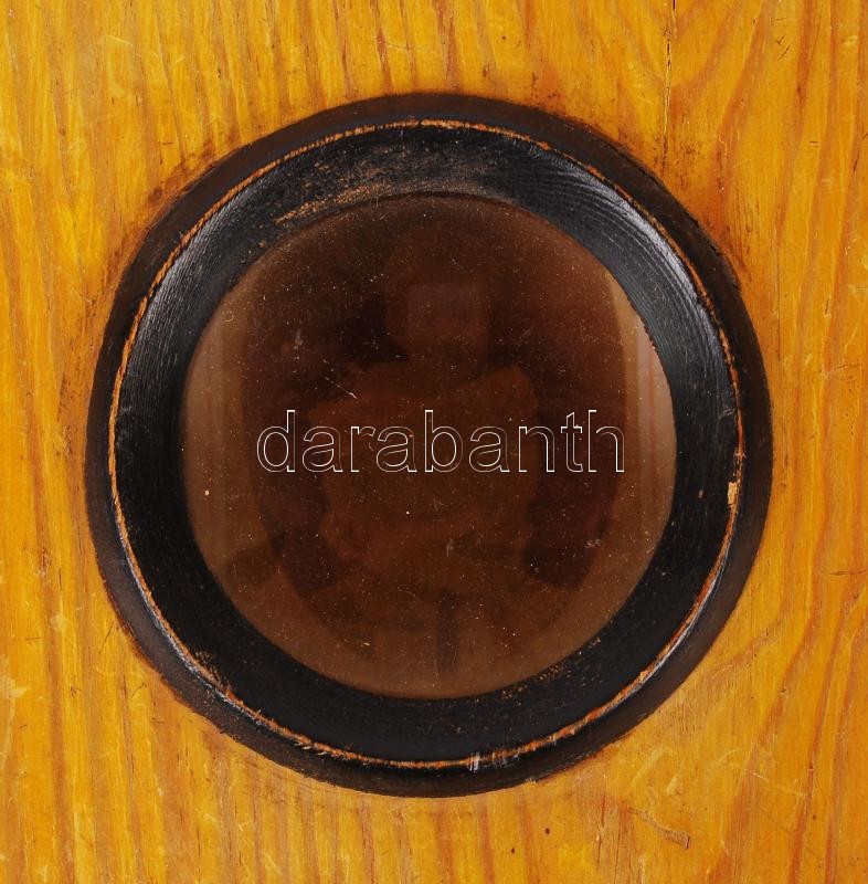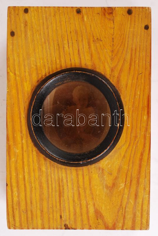 Beschreibung: Régi fa fényképnézegető doboz nagyító lencsével, benne 1 db fotóval, 21x14x6 cm