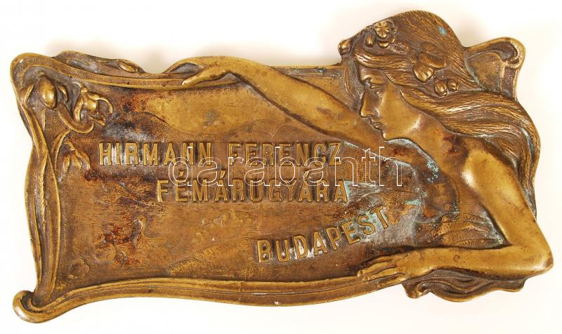 cca 1900 Hirmann Ferenc fémárugyára szecessziós bronz tálka / Art nouv... https://www.darabanth.com/de/216-Fernauktion/216.0/Andere-Sammelgebiete/Flohmarkt~400043/cca-1900-Hirmann-Ferenc-femarugyara-szecesszios-bronz-talka-Art-nouveau-brass-tray-21x12-cm~II916898
