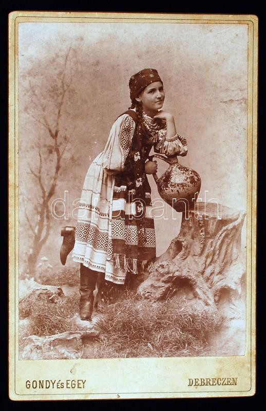 1900 Népviseletbe öltözött lány, Gondy és Egey Debrecen, keményhátú fo... https://www.darabanth.com/de/216-Fernauktion/216.0/Andere-Sammelgebiete/Foto~400056/1900-Nepviseletbe-oltozott-lany-Gondy-es-Egey-Debrecen-kemenyhatu-foto-11x16-cm~II913441