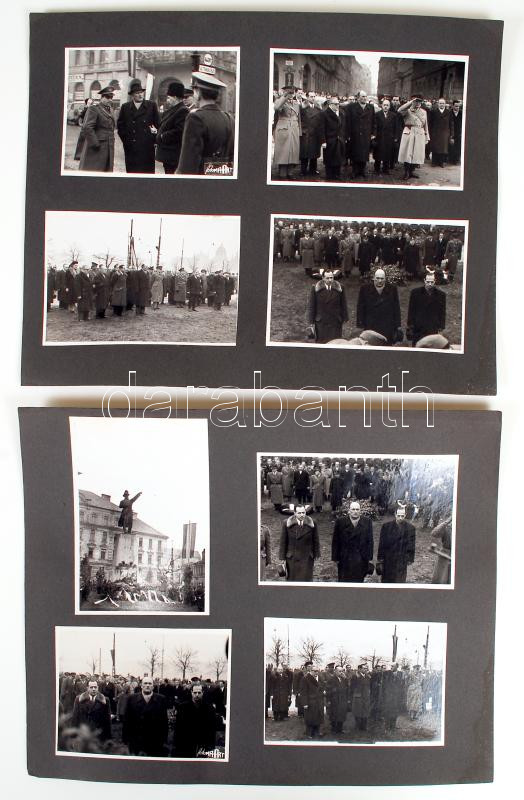 Beschreibung: 1947-1948 A Dinnyés-kormány a Bem téren, 8 db fotó, kartonra kasírozva, 13x9 cm