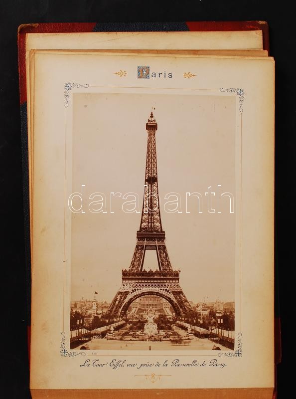 cca 1880-1890 Paris et ses Environs, 24 képet tartalmazó díszes album megviselt állapotban, 19x12 cm /
