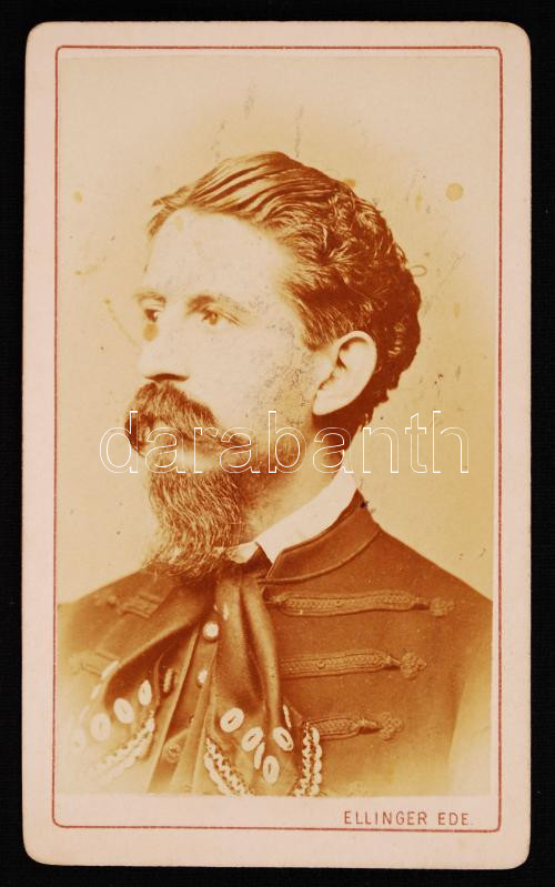 Beschreibung: cca 1880 Vécsey Oláh Károly, a kiegyezés korszakának képviselője, keményhátú fotó, 6x10 cm