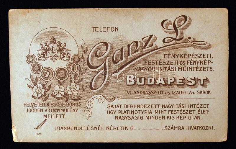 Beschreibung: cca 1900 Hölgy arcképe, régi keményhátú fotó, Ganz L. műterme, 6x11 cm