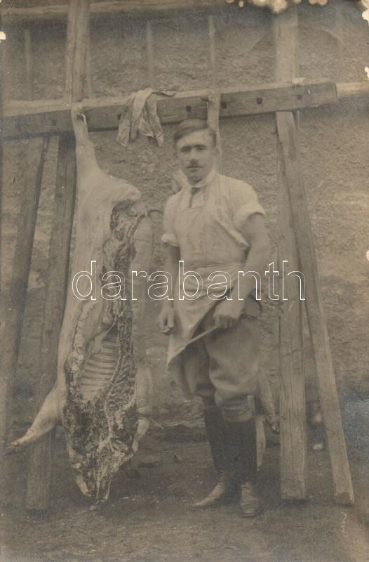 cca 1920 Privát fotólap a henteslegényről és fél disznajáról, melyet k... https://www.darabanth.com/de/216-Fernauktion/216.0/Andere-Sammelgebiete/Foto~400056/cca-1920-Privat-fotolap-a-henteslegenyrol-es-fel-disznajarol-melyet-karacsonyi-es-ujevi~II912366