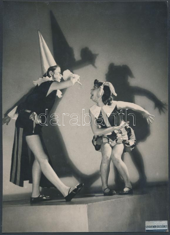 cca 1930-1940 Leichtner Erzsébet vintage fotója Szentpál Olga gyermek tánccsoportjának tagjairól, matricával jelzett, a Szentpál iskola archívumából, 23x17 cm