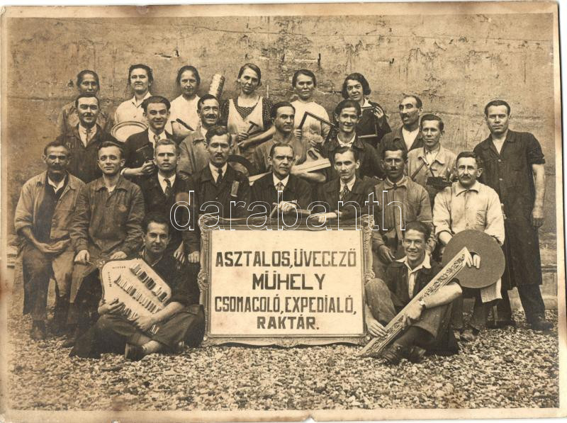 cca 1930 Csoportkép az asztalos és üvegező műhelyben dolgozókról, kezü... https://www.darabanth.com/de/216-Fernauktion/216.0/Andere-Sammelgebiete/Foto~400056/cca-1930-Csoportkep-az-asztalos-es-uvegezo-muhelyben-dolgozokrol-kezukben-szerszamok-anya~II912363