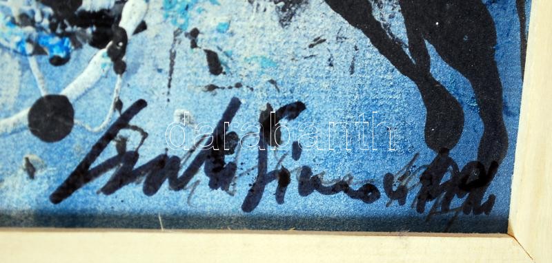 Beschreibung: Csorba Simon László (1943-): Anya a fiával. Vegyes technika, papír, keretben, 70×50 cm
