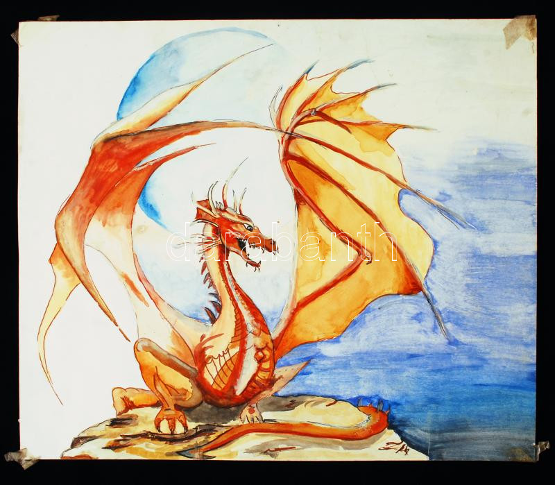 Olvashatatlan jelzéssel: Sárkány. Akvarell, papír, 29,5×29,5 cm https://www.darabanth.com/de/216-Fernauktion/216.0/Andere-Sammelgebiete/Gemalde-und-Grafiken~400018/Olvashatatlan-jelzessel-Sarkany-Akvarell-papir-29-5C39729-5-cm~II908794