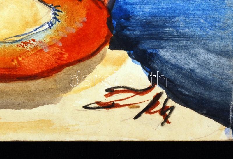 Beschreibung: Olvashatatlan jelzéssel: Sárkány. Akvarell, papír, 29,5×29,5 cm