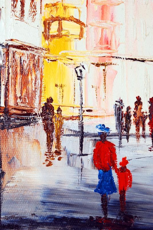 Beschreibung: Olvashatatlan jelzéssel: Utca részlet. Olaj, vászon, 35×50 cm