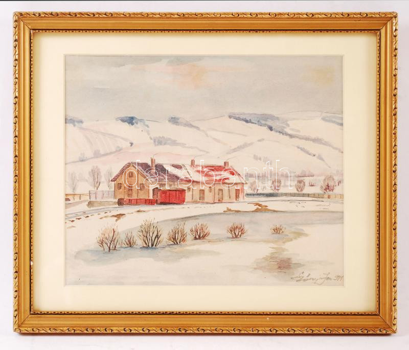 Szőnyi Jenő (1902-?): Téli táj raktár épülettel. Akvarell, papír, jel... https://www.darabanth.com/de/216-Fernauktion/216.0/Andere-Sammelgebiete/Gemalde-und-Grafiken~400018/Szonyi-Jeno-1902-Teli-taj-raktar-epulettel-Akvarell-papir-jelzett-uvegezett-kerte~II908729
