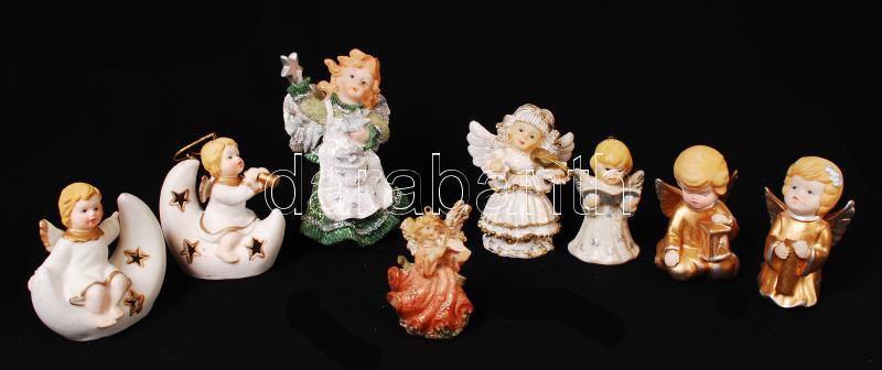 Beschreibung: 8 db karácsonyi kerámia angyalka, 7 és 12 cm közötti méretekben