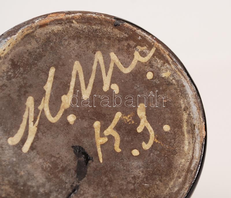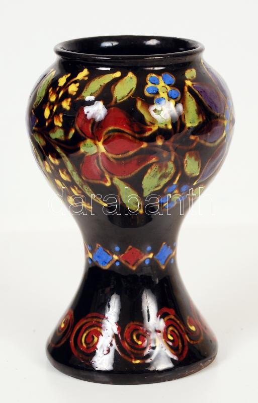 Beschreibung: K.I. jelzéssel iparművész virágmintás kerámia váza, hibátlan, m: 14 cm