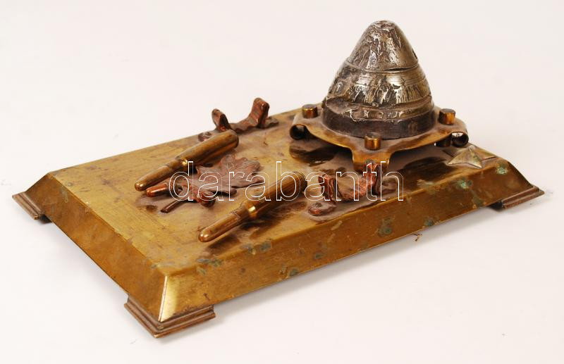 Egyedi készítésű asztali tintatartó, réz, 14×23 cm https://www.darabanth.com/de/216-Fernauktion/216.0/Andere-Sammelgebiete/Militaria~400022/Egyedi-keszitesu-asztali-tintatarto-rez-14C39723-cm~II911084