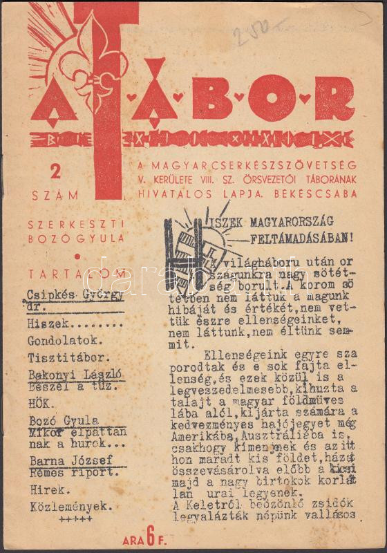 cca 1930 A Tábor c. cserkészújság. (V. kerület VIII. sz őrsvezetői lap... https://www.darabanth.com/de/216-Fernauktion/216.0/Andere-Sammelgebiete/Pfadfinder~400021/cca-1930-A-Tabor-c-cserkeszujsag-V-kerulet-VIII-sz-orsvezetoi-lapja~II916790