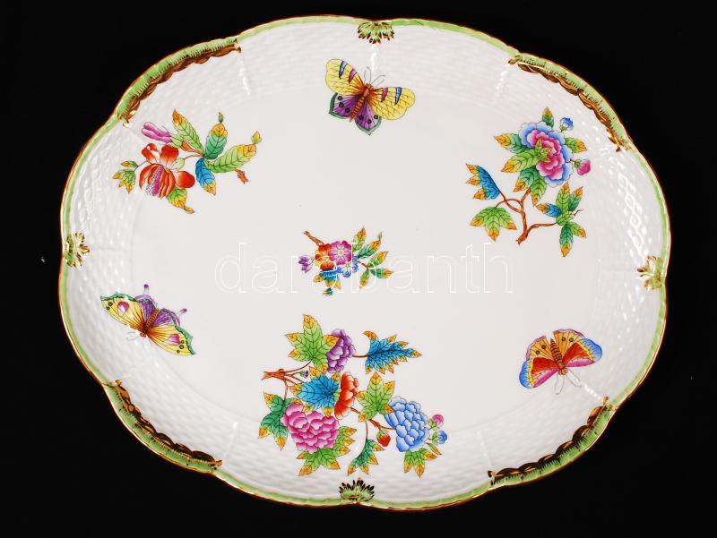 Beschreibung: Herendi Viktória mintás szendvicses tál, kézzel festett, jelzett, hibátlan, 25,5×31,5 cm