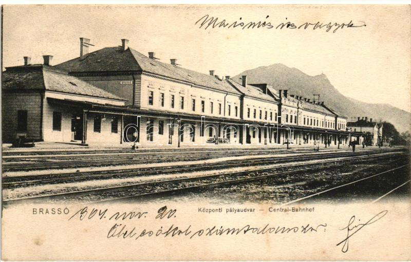 Brassó, Kronstadt; Központi pályaudvar, vasútállomás / railway station https://www.darabanth.com/de/216-Fernauktion/216.0/Ansichtskarten/Siebenburgen~400017/Brasso-Kronstadt-Kozponti-palyaudvar-vasutallomas-railway-station~II909783