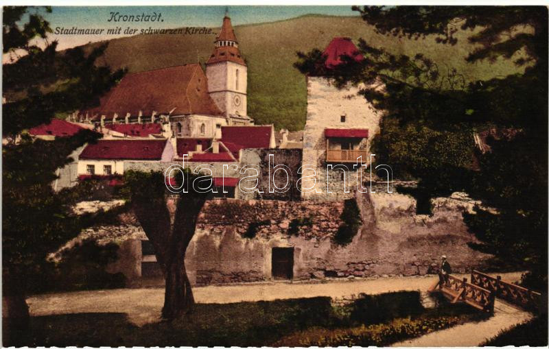 Brassó, Kronstadt; Városfal, Fekete templom / town wall, church https://www.darabanth.com/de/216-Fernauktion/216.0/Ansichtskarten/Siebenburgen~400017/Brasso-Kronstadt-Varosfal-Fekete-templom-town-wall-church~II909761