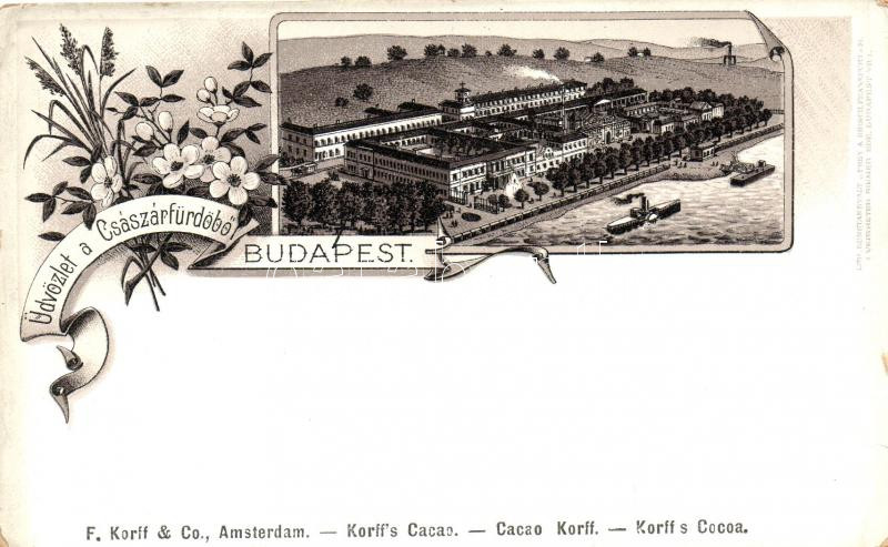 Budapest II. Császár fürdő floral, litho (EK) https://www.darabanth.com/de/216-Fernauktion/216.0/Ansichtskarten/Ungarn~400016/Budapest-II-Csaszar-furdo-floral-litho-EK~II915000
