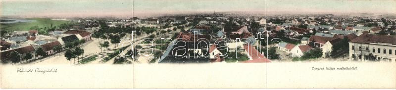 Beschreibung: Csongrád, Látkép zsinagógával, Bozo és Justin kiadása; panoramacard (hajtásnál elvált)