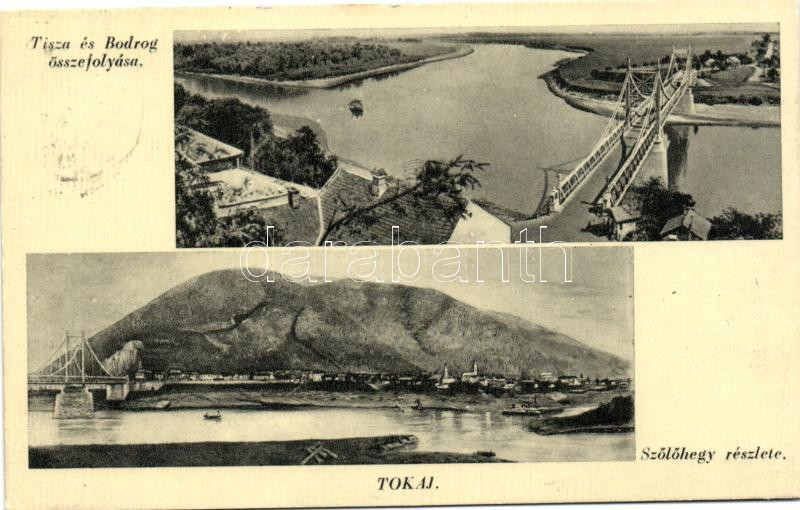 Tokaj, Tisza és Bodrog összefolyása, Szőlőhegy https://www.darabanth.com/de/216-Fernauktion/216.0/Ansichtskarten/Ungarn~400016/Tokaj-Tisza-es-Bodrog-osszefolyasa-Szolohegy~II916039