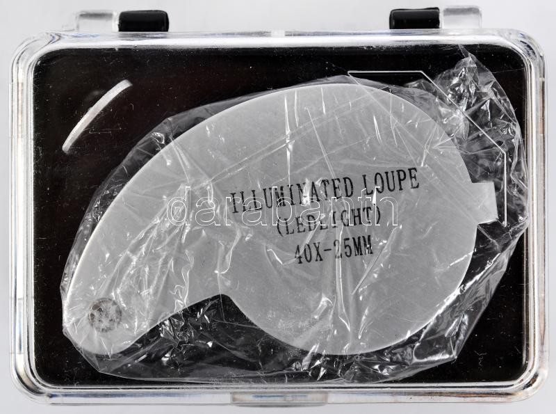 Beschreibung: Illuminated / 40x-25mm LED világítással ellátott fém ékszerész loupe új állapotban