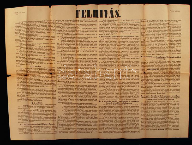 1884 Nagyméretű hirdetmény az újoncozás és hadkötelezettség szabályair... https://www.darabanth.com/de/217-Fernauktion/217.0/Andere-Sammelgebiete/Drucksachen~12/1884-Nagymeretu-hirdetmeny-az-ujoncozas-es-hadkotelezettseg-szabalyairol~II919941