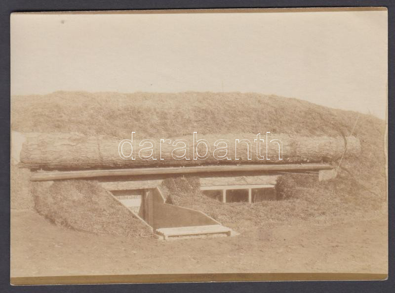 Beschreibung: cca 1914-1918 Katonai fotó, 8-10 méteres fatörzzsel megerősített föld alatti fedezék lejárata, 8,5x12 cm