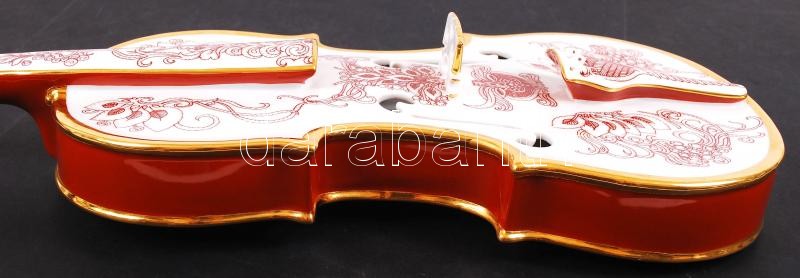Beschreibung: Hollóházi Szász Endre tervezte hegedű, kézzel festett, jelzett, hibátlan, hiányos, h:59 cm