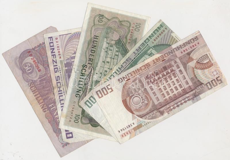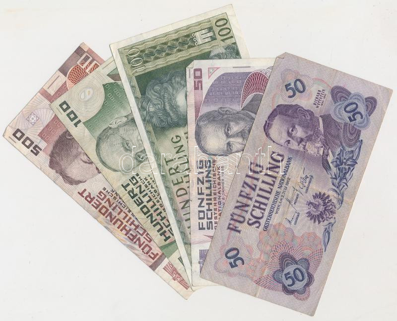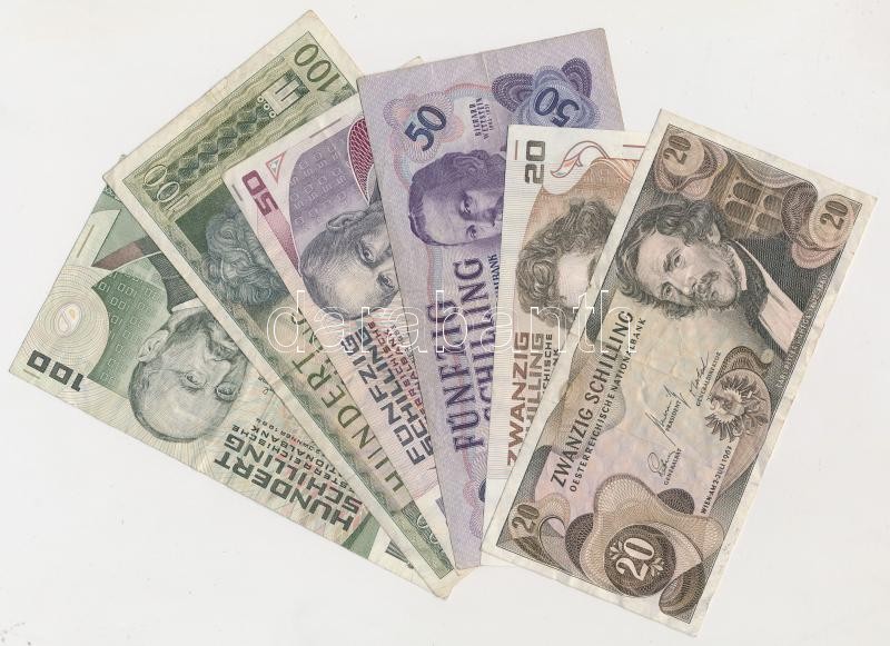 Ausztria 1950. 20Sch (4x), 1967. 20Sch (7x), 1986. 20Sch (17x), 1962. 50Sch (2x), 1986. 50Sch (2x), 1969. 100Sch (2x), 1984. 100Sch (2x), 1985. 500Sch illetve