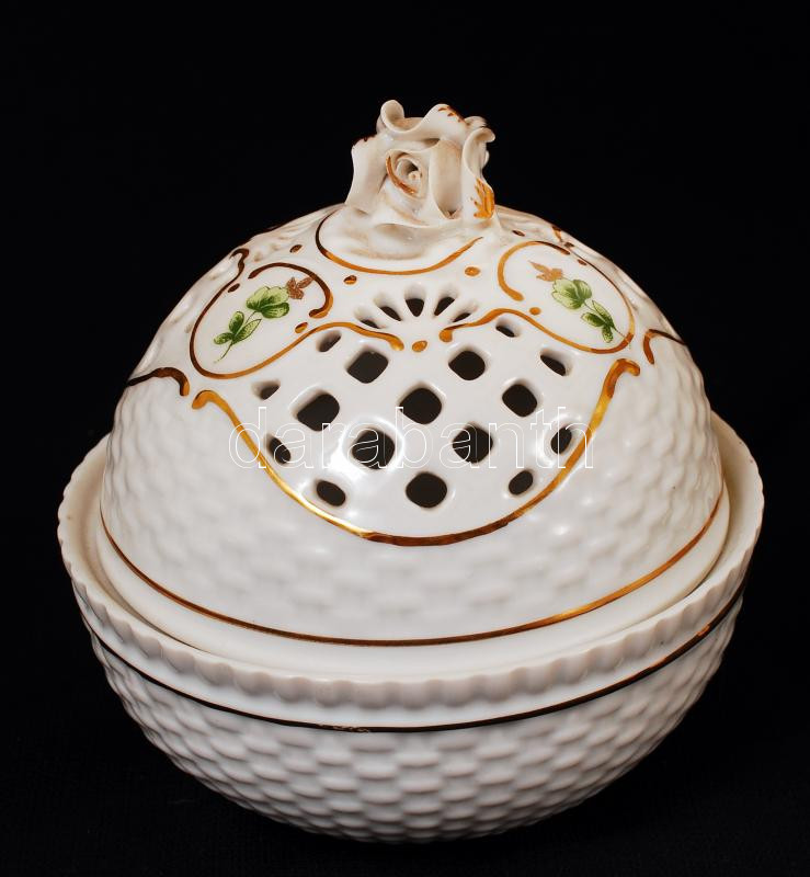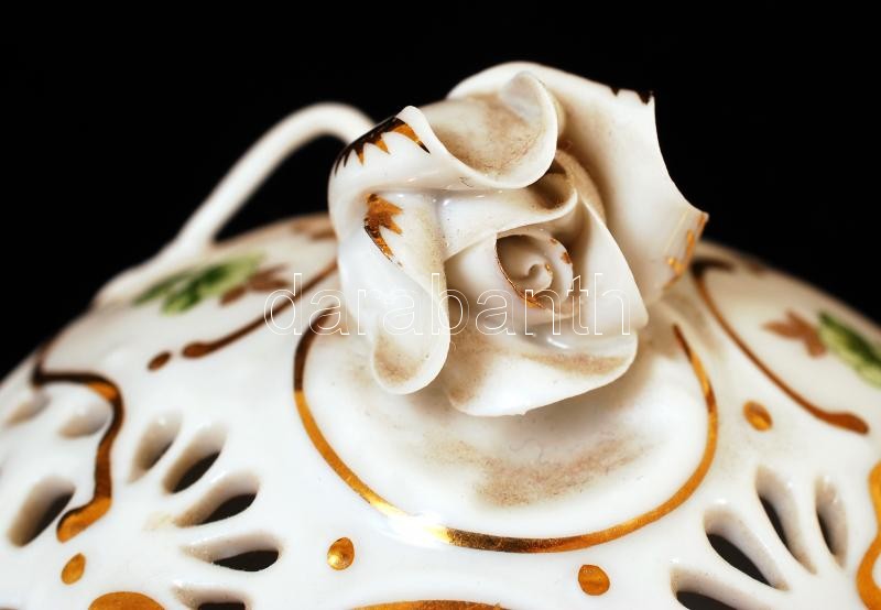 Hollóházi áttört bonbonier, matricás, jelzett, hibátlan, m:11 cm, d:10... https://www.darabanth.com/de/218-Fernauktion/218.0/Andere-Sammelgebiete/Andere-Porzellan-und-Glasswaren~200041/Hollohazi-attort-bonbonier-matricas-jelzett-hibatlan-m11-cm-d10-5-cm~II925228