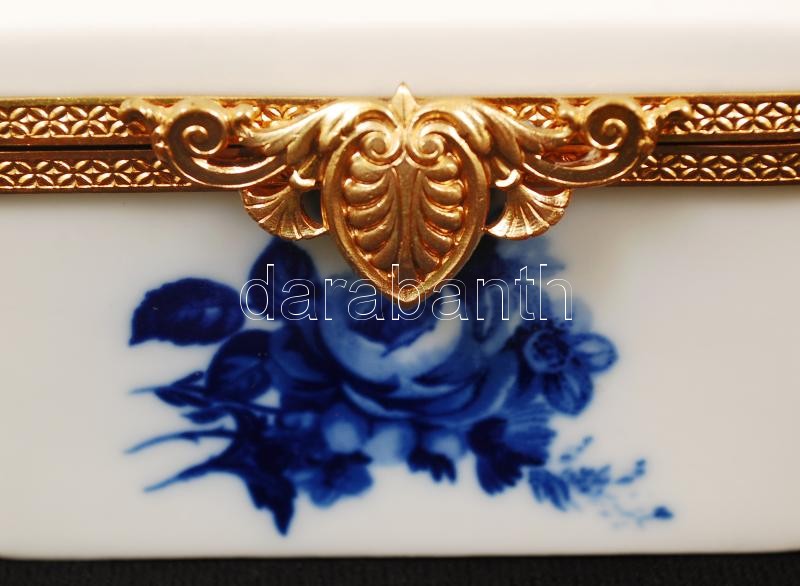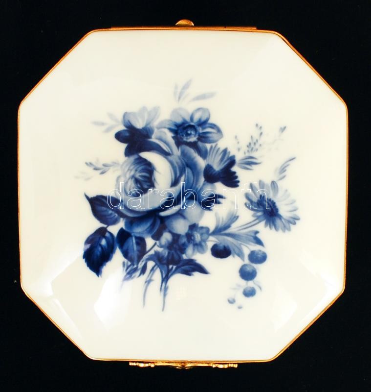 Beschreibung: Limoges virág mintás dobozka, levonó képes, jelzett, hibátlan, réz szerelékkel, 15×15 cm