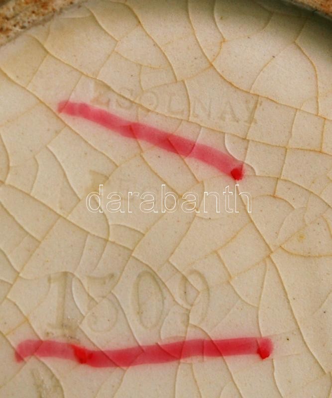 Zsolnay 1882-1885-ben készült mázas kerámia váza, jelzett (mélynyomáso... https://www.darabanth.com/de/218-Fernauktion/218.0/Andere-Sammelgebiete/Andere-Porzellan-und-Glasswaren~200041/Zsolnay-1882-1885-ben-keszult-mazas-keramia-vaza-jelzett-melynyomasos-apro-lepattanassa~II921222