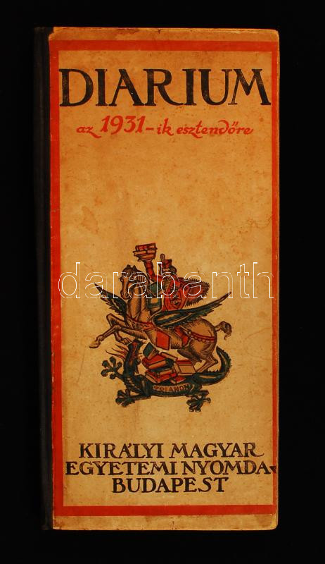 Diarium, azaz előjegyzési naptár az 1931-ik évre. Kiadja a Királyi Mag... https://www.darabanth.com/de/218-Fernauktion/218.0/Andere-Sammelgebiete/Bucher-Sonstige-Raritaten~200040/Diarium-azaz-elojegyzesi-naptar-az-1931-ik-evre-Kiadja-a-Kiralyi-Magyar-Egyetemi-Nyomda-Buda~II927049
