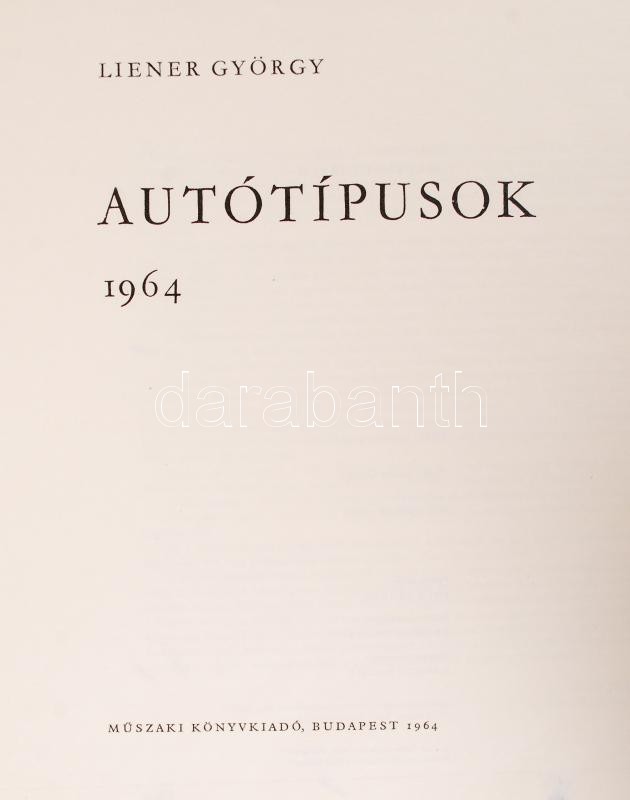 Liener György: Autótípusok 1964. Bp., 1964, Műszaki Könyvkiadó. Kiadói... https://www.darabanth.com/de/218-Fernauktion/218.0/Andere-Sammelgebiete/Bucher-Sonstige-Raritaten~200040/Liener-Gyorgy-Autotipusok-1964-Bp-1964-Muszaki-Konyvkiado-Kiadoi-felvaszon-kotes-i~II902760