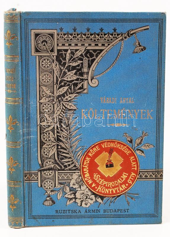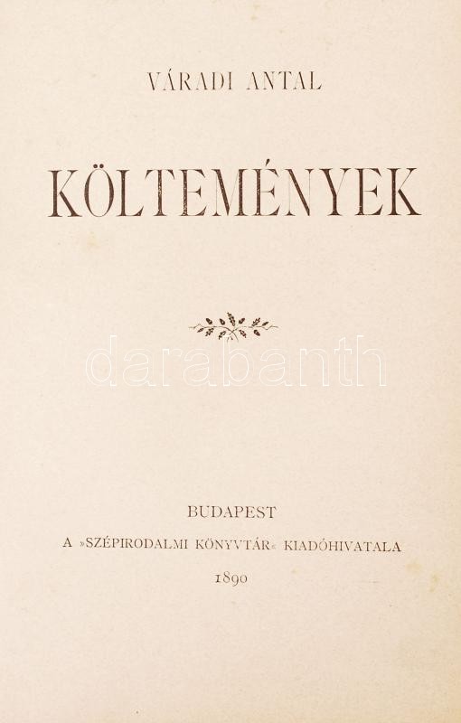Váradi Antal: Költemények. Bp., 1890. Szépirodalmi könyvkiadó. Ruzitsk... https://www.darabanth.com/de/218-Fernauktion/218.0/Andere-Sammelgebiete/Bucher-Sonstige-Raritaten~200040/Varadi-Antal-Koltemenyek-Bp-1890-Szepirodalmi-konyvkiado-Ruzitska-Armin-Festett-eges~II832224