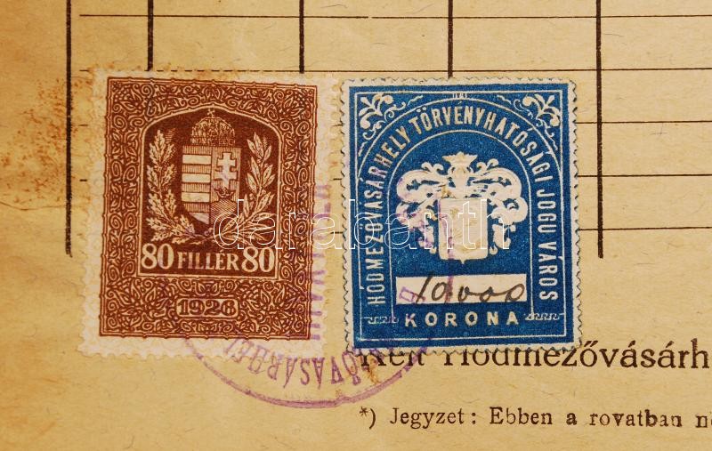 1927 Hódmezővásárhely városi illetékbélyeg 10.000 kézírással teljes ir... https://www.darabanth.com/de/218-Fernauktion/218.0/Andere-Sammelgebiete/Dokument~200027/1927-Hodmezovasarhely-varosi-illetekbelyeg-10000-kezirassal-teljes-iraton~II929175
